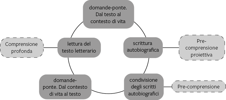 Il circuito all’interno del nodo-esperienza non muove dunque dalla comprensione del testo, ma considera quest’ultima come punto di arrivo, obiettivo dell’intero percorso: il cammino tra i nodi del circuito infatti riflette il percorso formativo dell’allievo, che, da un primo approccio al testo, approda alla conquista profonda del suo significato e alla penetrazione del senso come pertinente rispetto a sé.